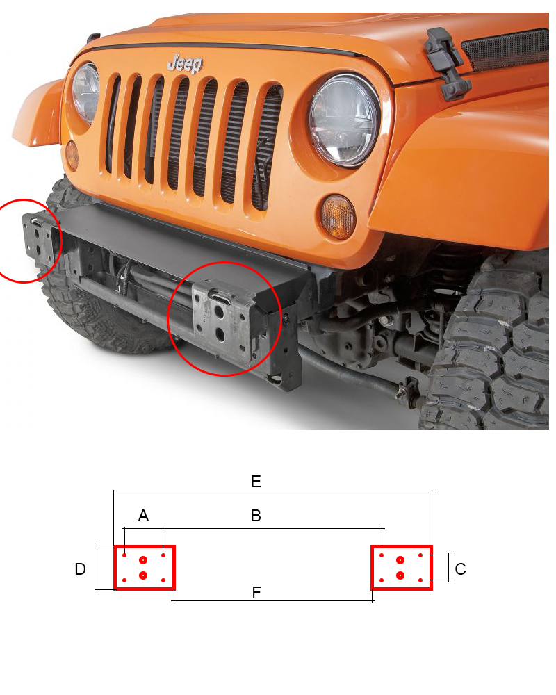 Ahojte, ma niekto z vas rozmery na wrangler JK na upevnenie predneho naraznika? Potrebujem si navrhnut naraznik a nechce sa mi zbytocne davat dole len kvoli premeraniu. Ak niekto ma prosim napiste to sem podla prilozenych obrazkov. Dakujem