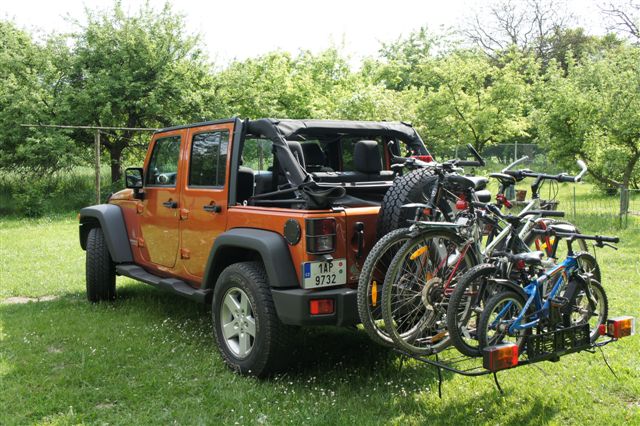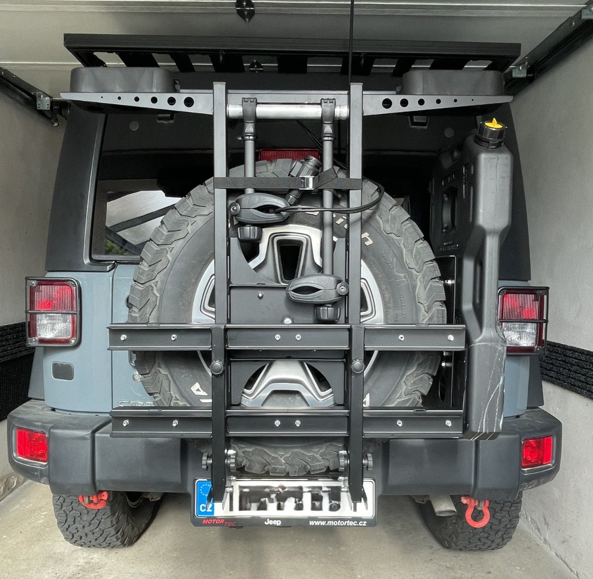 Ale tady jsou další ALE ! Nechci nosič na kouli.Mám US tažný a tak chci nosič do US tažnýho. Ty se tady v EU neprodávaj a ty co jsou za vodou,jsou sice laciný a docela jednoduchý ale na dopravě to naskáče a nemají TüV. Ten mě ale zase tak moc netrápí. Jsou tu ale další proti. Jelikož Wrangler má horizontálně otevírací vrata,tak se úplně neotevřou ani když ty nosiče jsou sklopný.To sklápění funguje jen u aut co se jim dveře otevírají vzhůru.Takže jak tam je nosič s kolem,nejde se dosta do kufru. Pka jsou ještě nosyče,co jsou zavěšený na rezervě ale na ty se kola zavěčují za horní rám,to se mi nelíbí,panty dveří už takhle trpí a ještě je dál zatěžovat nákladem,taky blbý a třetí,dělají se maximálně na pneumatiky do rozměru 31".Já mám 33.Dá se ale s nima otevřít kufr.