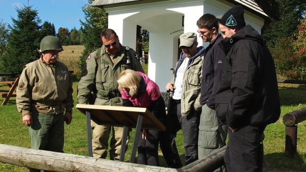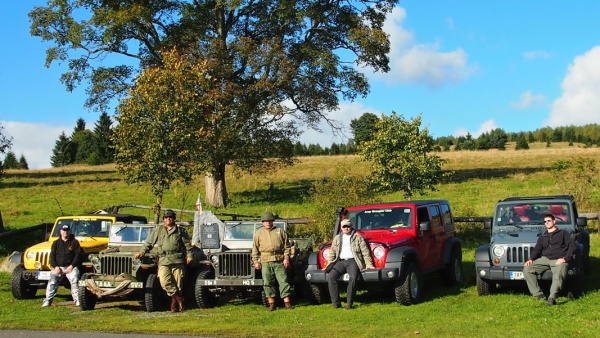 Hamry, sedlo Špičák, Železná Ruda, Prášily (zastávka na zajímavé výstavě věnované poválečné historii Přášil, bolševické zvůli, a vojenskému prostoru Dobrá voda u Sušice), Srní, Modrava, Kvilda (zastávka na Jezerní slaťi), Horská Kvilda (polévka, vošouch, malé pivo), začíná se dělat hezky, vylézá konečně i sluníčko :todáš:, sjezd přes Svojše do Rejštejna, okolo Otavy do Annína, výjezd do Hartmanic, zadní cestou (některé Willysy musí jet i na 1ku) okolo horské farmy na křižovatku pod Zhůří. Pěkně v koloně vjíždíme do perimetru bývalého Zhůří, počasí 1A, krásný výhled na náhorní planinu, slavnostní položení květin k památníku 90. pěší divize US Army, prohlídka kapličky, dobových fotografií a kříže smíření.