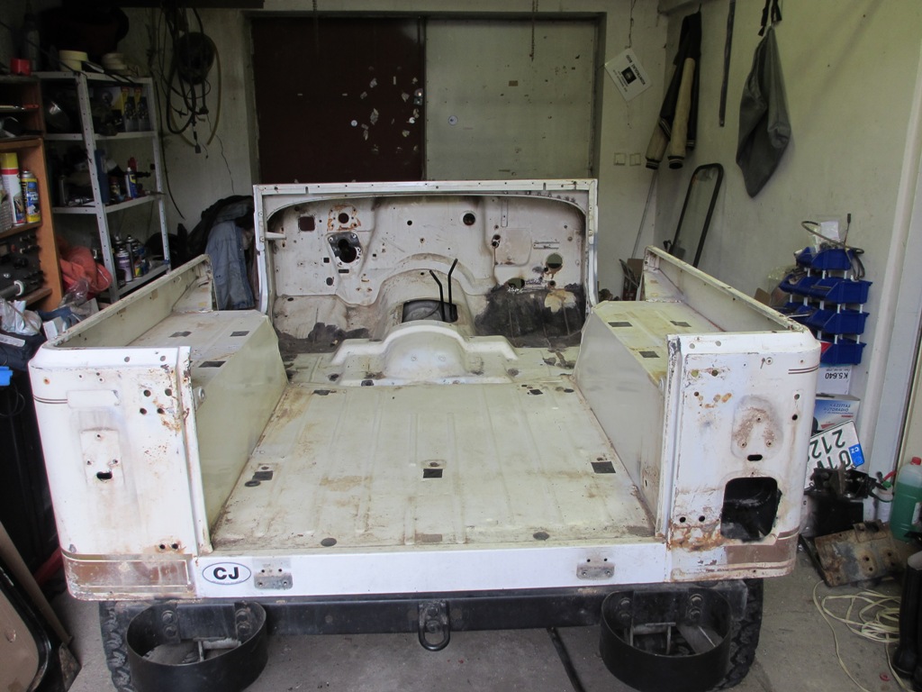 A nyní, protože se uvolnilo místo v garáži po JK, došlo na slibované Frame Off. Jak tak vše odstrojuji, různě si drbu hlavu zda to někdy dam do kupy a jindy jsem zas vesel, že jsem to dále neodkládal. Ona Californie je prima stát, koroze minimální. Ale tady u nás chudák CJ začal chytat větší a větší lišku a tak mne čeká pískování karoserie před lakováním... Po pískování bych rád použil kataforézní lakování jako základ pod barvu, ale zatím nevim kam se obrátit. Kdyby měl někdo s kataforézou zkušenost, sem s ní!